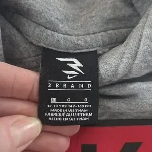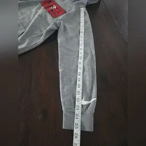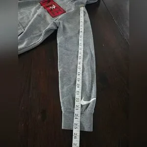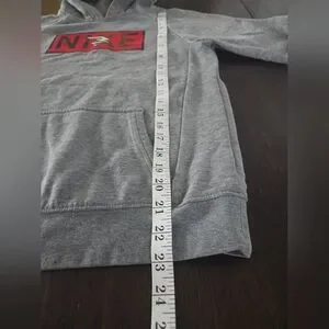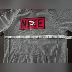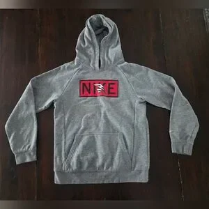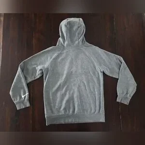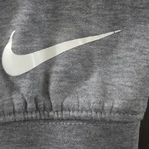 Stay comfortable and stylish with this Nike gray kids hoodie. Perfect for casual outings. This sweatshirt has some signs of wear in the logos, shown in close up photos. Other than the logos, there is no stains, holes, pulls, etc.