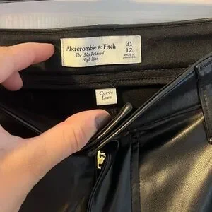 Sleek black straight leg pants. Features cargo pockets. Perfect for versatile styling.