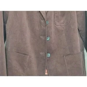 Keywords: Talbots blazer, women's corduroy, brown jacket, classic style, single breasted, notched lapel, business casual, fall fashion, smart outerwear, tailored blazer, workwear, weekend wear
