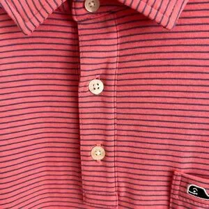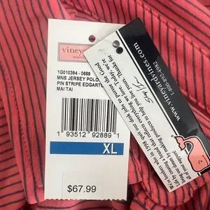 New Classic pink and blue striped polo by Vineyard Vines. Features a comfortable fit and stylish design. Men’s Jersey polo pin stripe Edgartown Mai Tai. Men’s XL
