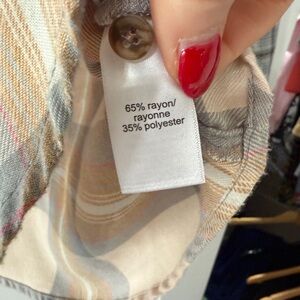 Stylish plaid button-up shirt with a mix of colors. Features a chest pocket and long sleeves. Worn a few times, great condition. Nonsmoking home