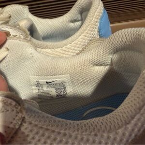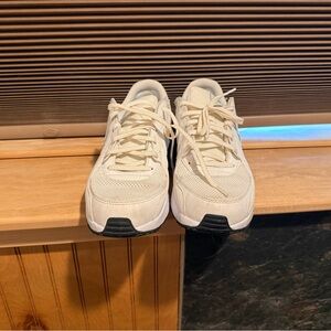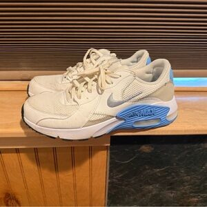 Nike Air Max sneakers in beige and light blue. Sleek and comfortable design.