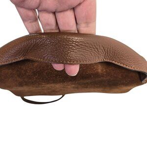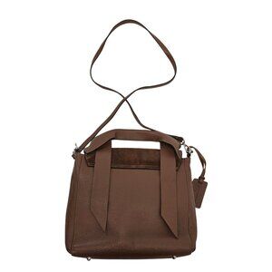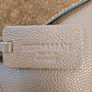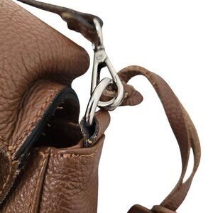 Gorgeous pebble leather convertible crossbody bag that has a nubuck suede leather flap closure. Removable crossbody strap and thicker handle with strap detail. Silver hardware, feet at the bottom, snap closure for the flap and top zipper closure on the inside. The lining has one zipper closure pocket and two slip pockets.