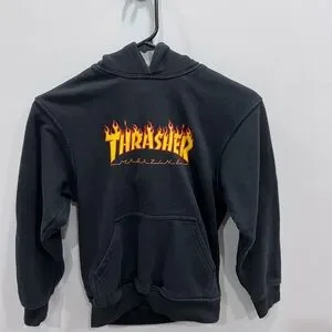 Thrasher Magazine Black Hoodie with Flame Logo Size M (boys 7)