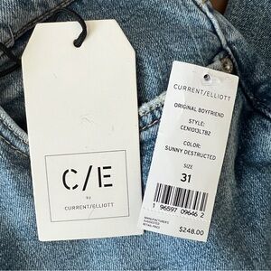 CURRENT ELLIOTT C/E Original Boyfriend Jeans Whitewashed Sunny Destructe…
