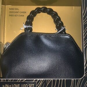 Mini Bag Set. Chic mini bag with braided handle. Features croissant charm & Paris key chain. Perfect for any occasion or as a gift .