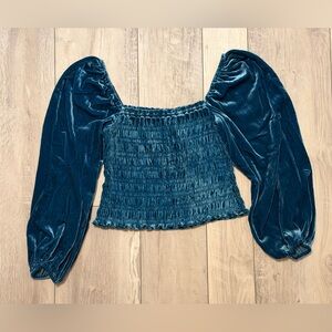 Anthropologie Blue Puff Sleeved Velvet Long Sleeve Blouse size Medium