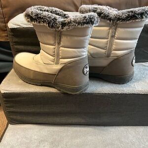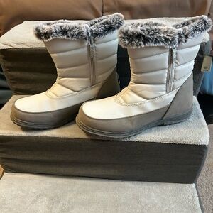 Totes Ada winter boots with cozy faux fur trim. Stylish and warm. Ideal for cold weather.