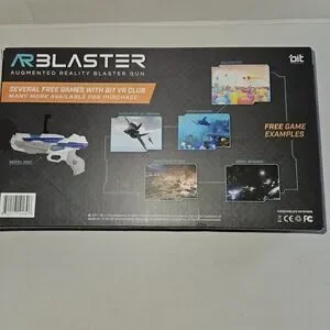 Experience immersive gaming with the Augmented Reality Blaster Gun. Featuring a sleek white and blue design, this device enhances your virtual reality adventures. Perfect for gaming enthusiasts seeking a new level of interaction.
