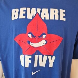 Bold blue tee with striking red graphic. Features 'Beware of Ivy' text. Perfect for casual wear. Nike 3XL.