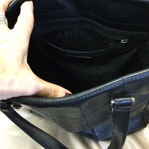 CHANEL Vintage (2003-2004) Chocolate Bar Tote Bag in Black Caviar Leather, Double Handles, Silver Tone Hardware, No Closure, Wear at Corners as Pictured, Interior with Two Zippered Pockets, One Logo Zipper Pull Missing as Pictured, Measures Approximately 9” L @ Base, 12” L @ Top x 9” H x 4.5” D, Handle Drop 6”