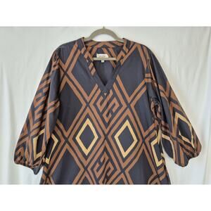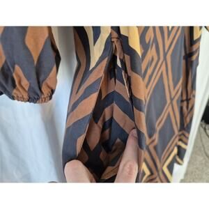 Anthropologie Porridge Womens Brown Black Geometric Mireil Midi Dress XL