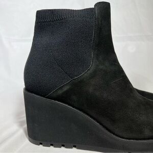 Eileen Fisher Adele Wedge Nubuck Leather Booties Ankle Boots Slip On