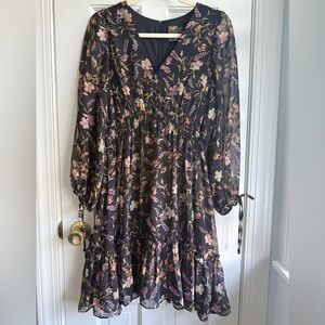 Taylor Brown Floral Long Sleeve Dress
