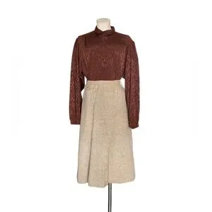 prestige skirt vintage wool skirt tweed midi skirt beige neutral skirt womens classic tailoring office wear retro skirt lined skirt