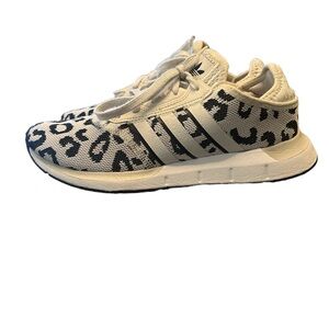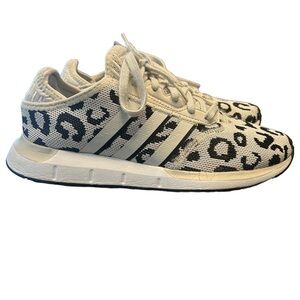 Adidas Swift Run X in a leopard print light beige background. Comfortable 7.5