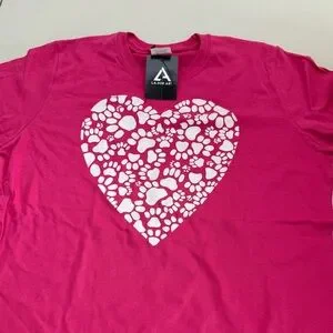 Vibrant pink tee with a bold heart design. Perfect for casual wear. Soft and comfortable fabric.