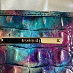 Stunning Brahmin tote with a vibrant multicolor design. Croc-embossed texture adds elegance. Perfect for a bold fashion statement.