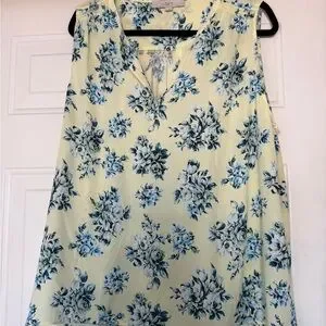 LOFT Sleeveless Floral Blouse - Soft Yellow and Blue