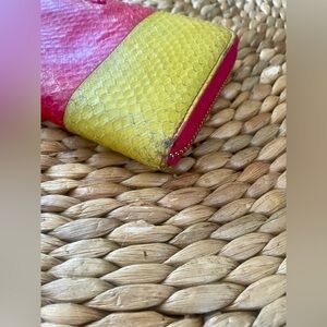 -Hot pink leather interior with 1 zippered coin compartment, 8 card slots and 2 dual bill compartments •interior in perfect condition•