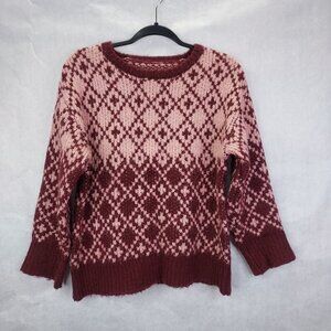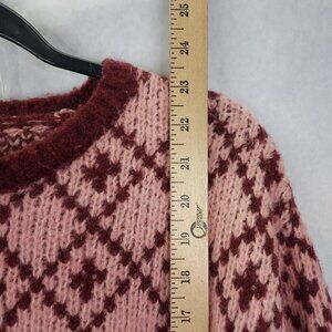 Maeve Anthropologie Siegfried Sweater Women's XS Pink Maroon Wool Argyle Preppy