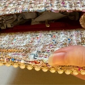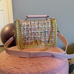 EUC Chic Multicolor Tweed Handbag with Gold Chain and Pink Trim