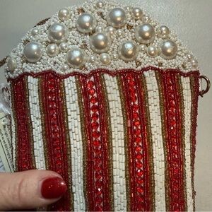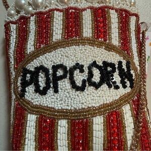 ✨ So fun, so unique! This fully hand-beaded popcorn purse is a total conversation starter. Crafted by skilled artisans in India, this novelty crossbody features intricate beadwork, pearl-style “popcorn,” and a gold-tone chain strap. Perfect for festivals, concerts, movie nights, or anyone who loves quirky statement accessories.