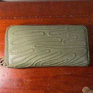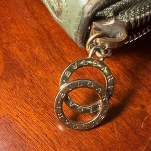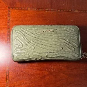 Elegant Bulgari wallet. Intricate stitching design. Zipper closure.