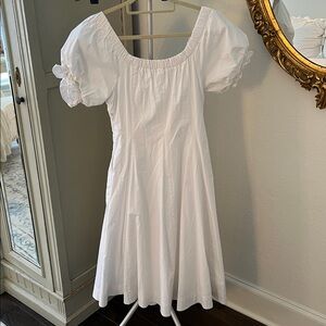 Chic white dress with puff sleeves. Perfect for any occasion.