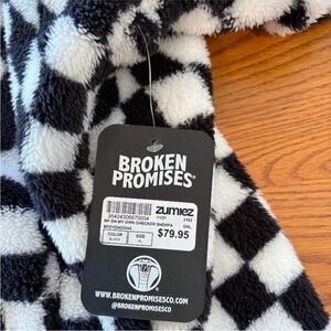 Broken Promises NWT Black and White Checkered Fleece Full Zip Jacket 🏁
