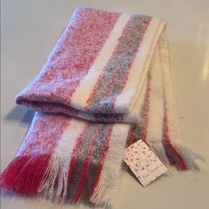NWT Free People Brushed Racer-Stripe Blanket Scarf Color Red Combo Size One Siz