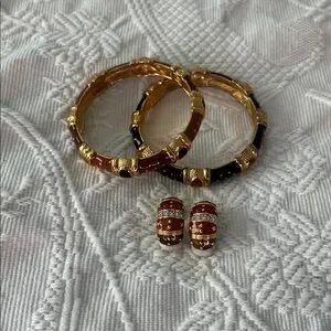 Elegant Joan Rivers 3-piece jewelry set featuring a gold-tone hinged bracelet and matching clip-on earrings.