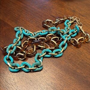These are gorgeous faux turquoise and faux tortoise large paperclip style chains that can be used on your handbags or ID lanyards, or necklaces or anything you want on jazz up with a pop of color. Each is about 26’ long and 3/4 wide. Great versatile pick up for your wardrobe and you get both!