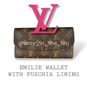 The last pic shows a Louis Vuitton cardholder insert in the same pink color that originally came with a large LV bag and pochette. This cardholder insert is offered separately and is not included with the Emilie wallet.