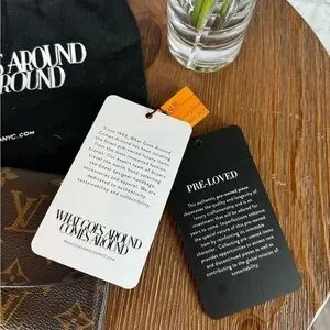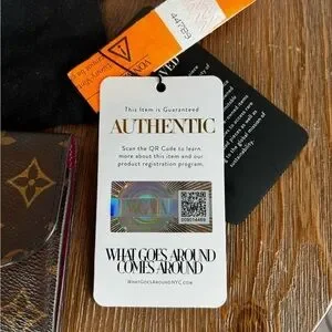 I purchased this very gently used What Goes Around Comes Around wallet at VonMaur.com. I only used it for a month or so before getting a different LV wallet. This was certified by What Goes Around and will ship with the dust bag and tags from the wallet.