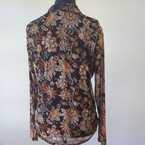 Elegant floral long sleeve top with a blend of vibrant colors. Perfect for any occasion.
