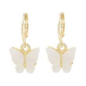 These elegant butterfly earrings feature a stunning gold and white design, perfect for adding a touch of sophistication to any outfit.
