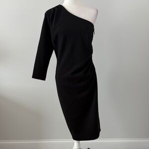 Gabrielle Union & New York & Co collab. Heads will turn when you step out in this chic one shoulder dress. Pleated detail at the shoulder and waist elevate the dress. Side zip. Fully lined. Dress has a bit of stretch. Add sexy heels and bold earrings and your wedding guest ready! Worn once. Excellent condition. Non smoking home.