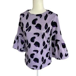 Tyler Boe Leopard Print Knit Top Bell Sleeves Purple Sz XS Preppy Modern Chic