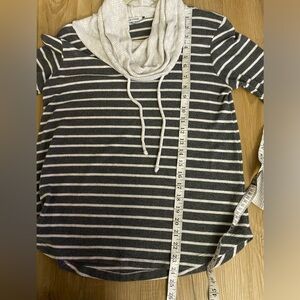 ❤️🔥❤️🔥Pink Clover Charcoal & Cream Striped Cowl Neck Drawstring Light Sweat Shirt
