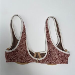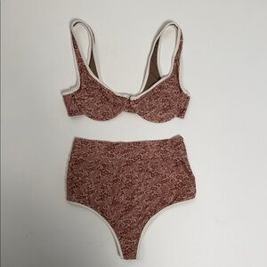Elegant floral bikini set. Features a high-waisted bottom. White piping, top has underwire - worn a few times - feels like new