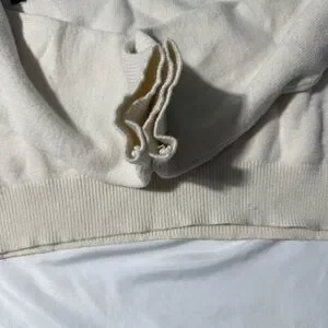 Soft knit in a neutral light beige/cream tone—perfect for pairing with high-waisted jeans, trousers, or skirts.