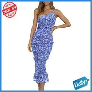Women's One Shoulder Midi Bodycon Dress Tiered Ruffle Boho Summer