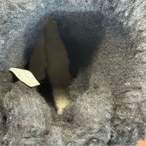 Condition note: One small area of light wear to the shearling trim along the top edge (see close-up photo). This is cosmetic only, very minor, and not noticeable when worn. Does not affect warmth, comfort, or wearability.