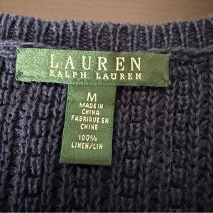 Lauren Ralph Lauren Open Cardigan Women Sz M Navy Knit V Neck Cropped 100% Linen