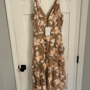 Dress the Population Floral Lace Midi Dress in Cream
