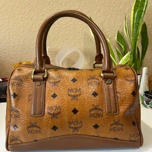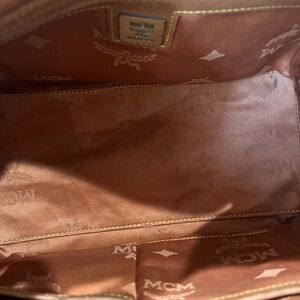 Authentic in vintage condition. Cognac Visetos leather with brass hardwares. Leather rubs present on corner bottom. Hardwares has some tarnishing and scratches. Fading of MCM monogram. Handles has micro cracks, discontinuance of rubber lining and a bit bent due to storage. Bag itself is a bit deformed due to age. Please manage your expectations as this is pre-loved.