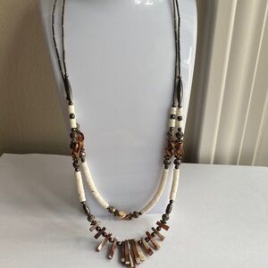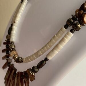 Vintage liquid silver and shell ๐ Brown and Cream Beaded Necklace