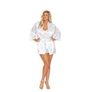 🆕🤍 Plus Size White Charmeuse Kimono Robe Sexy Lingerie