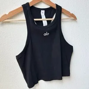 ALO Yoga Black White Aspire Cropped Tank Top Sz M